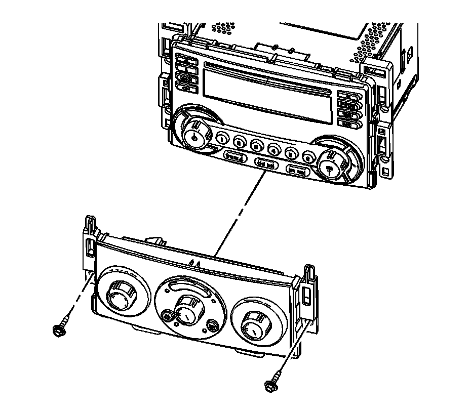 1. Remove the instrument panel (I/P) center trim panel. Refer to Instrument Panel Center Trim Panel Replacement Instrument Panel Center Trim Panel Replacement.