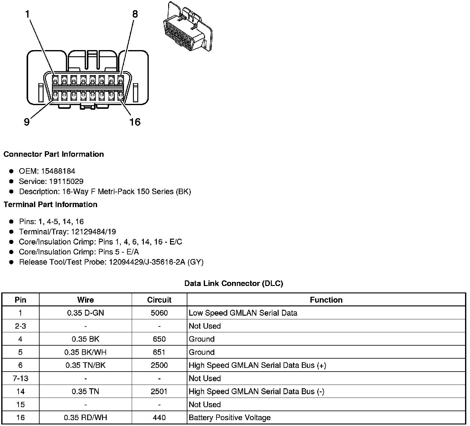 Data Link Connector: Diagrams