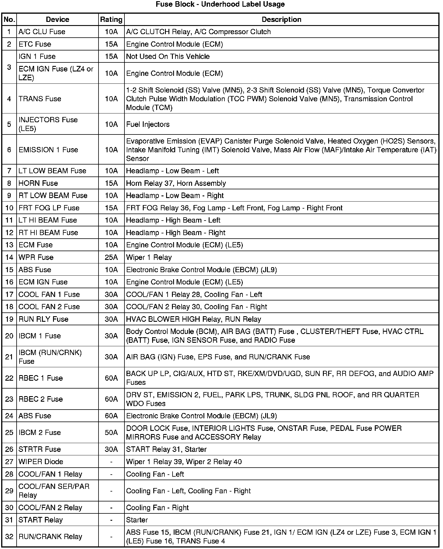 Fuse Block - Underhood Label