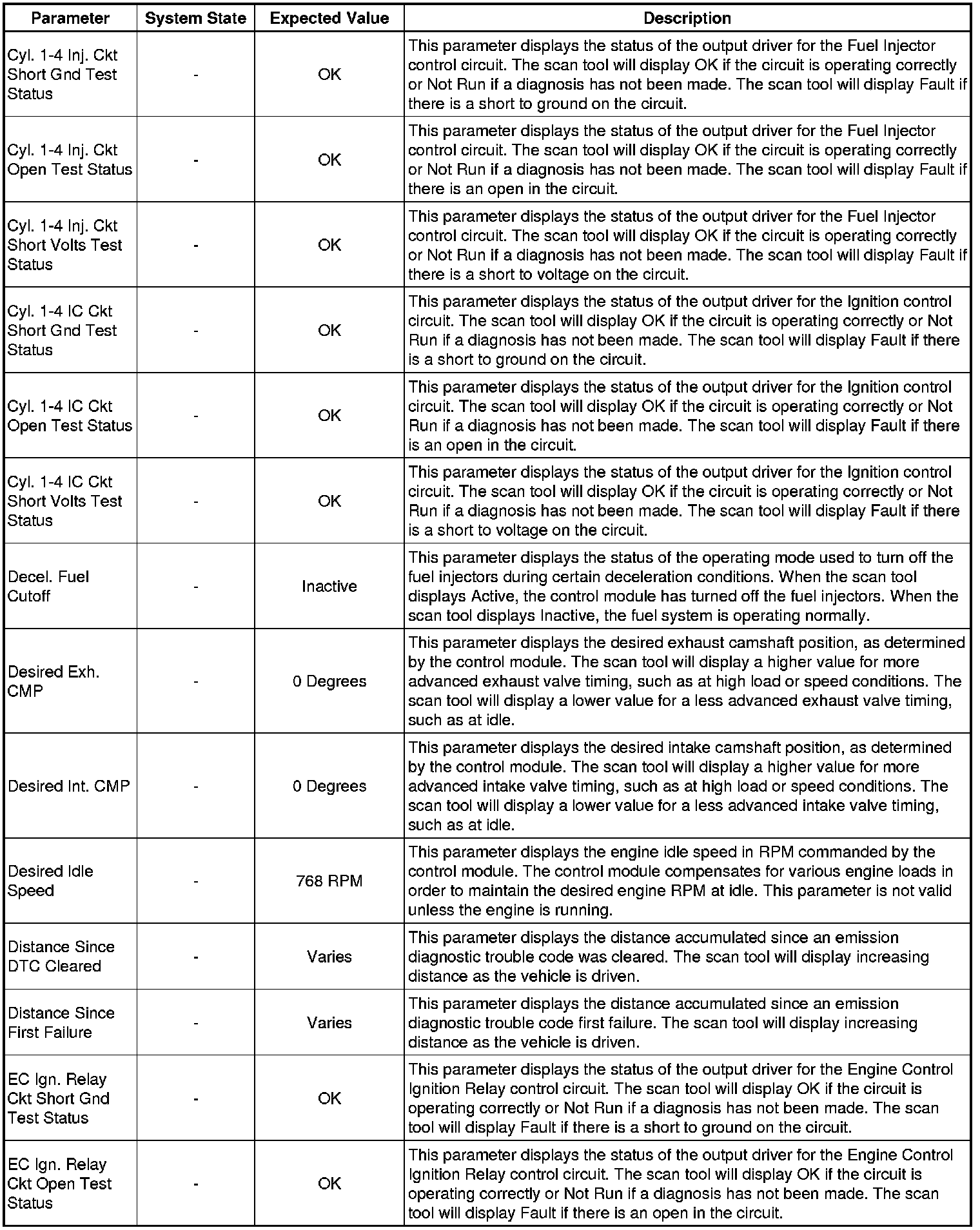 The Engine Control Module Scan Tool Data List contains all engine-related parameters that are available on the scan tool. The list is arranged in alphabetical order. A given parameter may appear in any one of the data lists, and in some cases may appear more than once, or in more than one data list in order to group certain related parameters together.