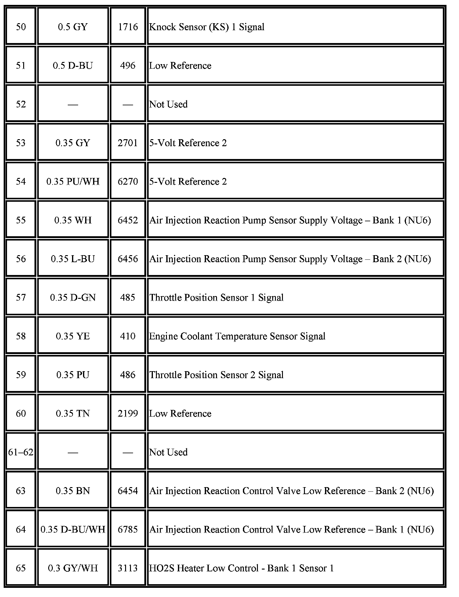 - Pins: 2-5, 9, 15, 19-20, 22-24, 30-31, 33, 35-38, 40-43, 45-46, 48, 53-60, 63-66, 68