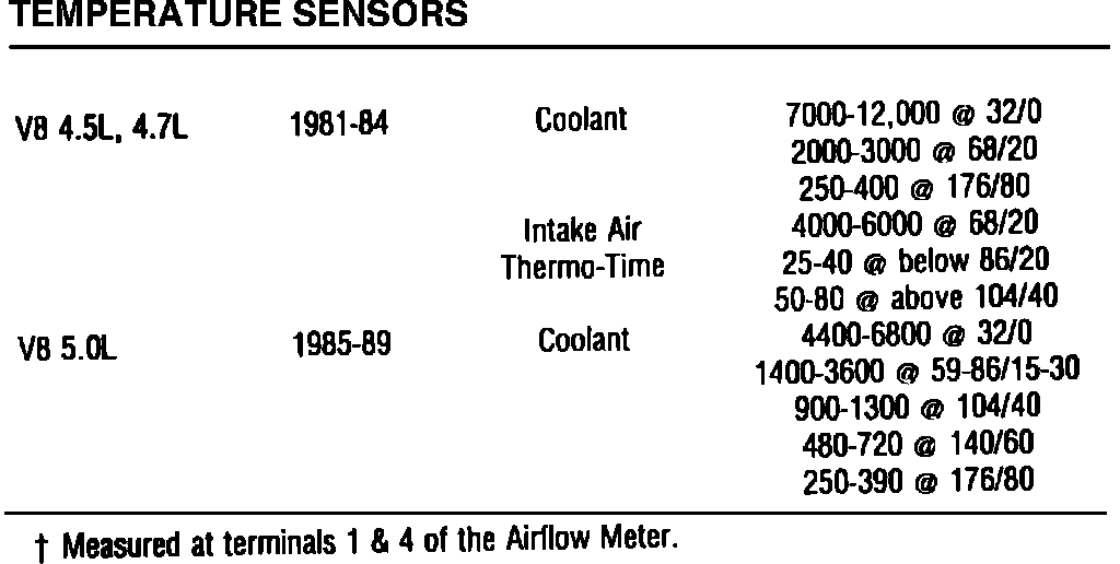 Coolant Temperature Sensor/Switch (For Computer): Specifications