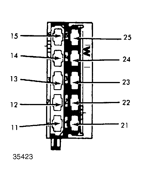 - Connect voltmeter on terminals 12 and 25 of disconnected EZF control unit plug. Turn ignition switch to the "ON" position. Display should show battery voltage. If no display, go to step 2). If voltage is shown, test is okay.