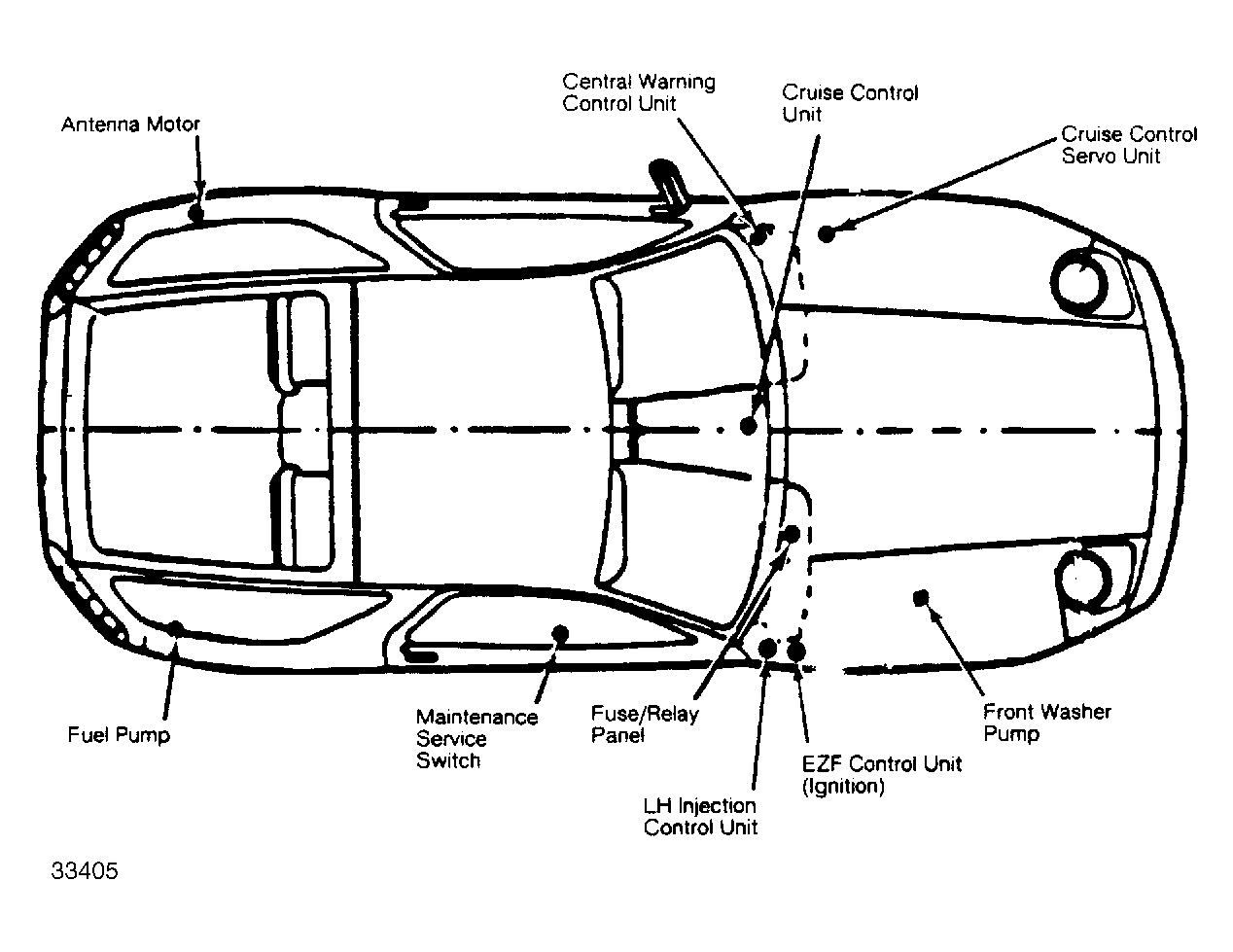 | EZF Control Unit (Ignition) | In passengers footwell next to EFI control unit. See Figure . |