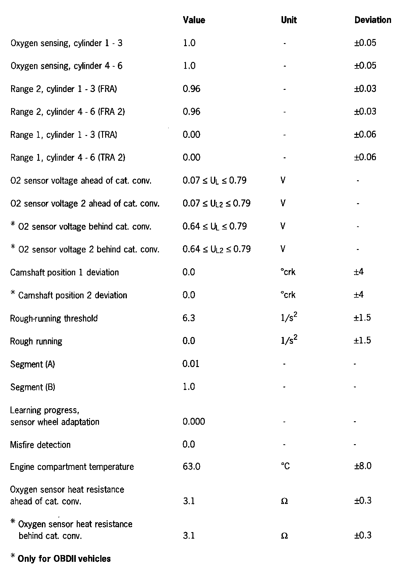 Different values can result from diagnosis in the workshop because of mileage and environmental influence. For DME diagnosis, it is important to look at several values simultaneously and in a collective group during troubleshooting.