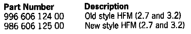 As of January 31, 2000, a new HMF is being introduced. The new HMF, which is less sensitive to dirt particles, is being installed in production starting with the following VIN numbers: