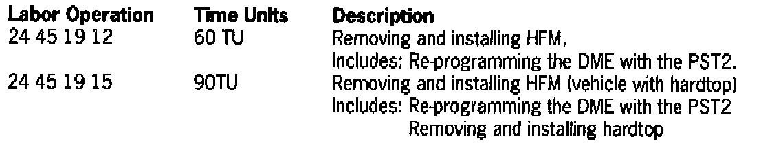When replacing an old style HMF sensor on vehicles with a new style HMF sensor, you have to reprogram the DME. Remember; do not install a new style HMF sensor until you receive the 9.0 software for the PST2.