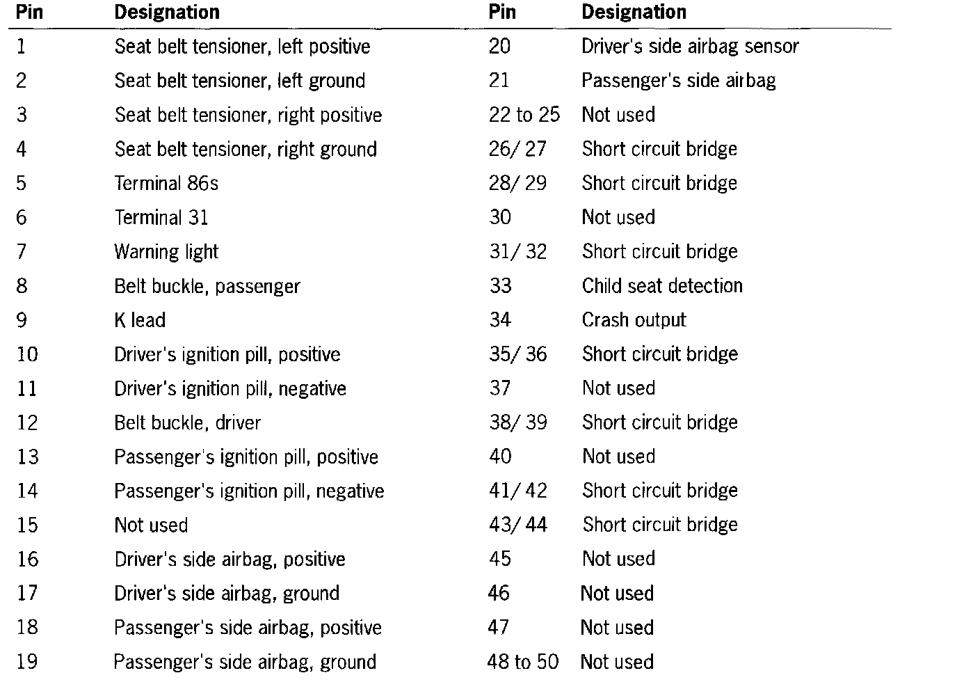 Wiring Harness Plugs For Airbag Triggering Unit