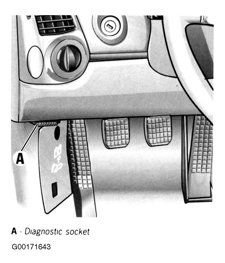 - Connect Porsche System Tester 2 to diagnostic socket. See Figure .