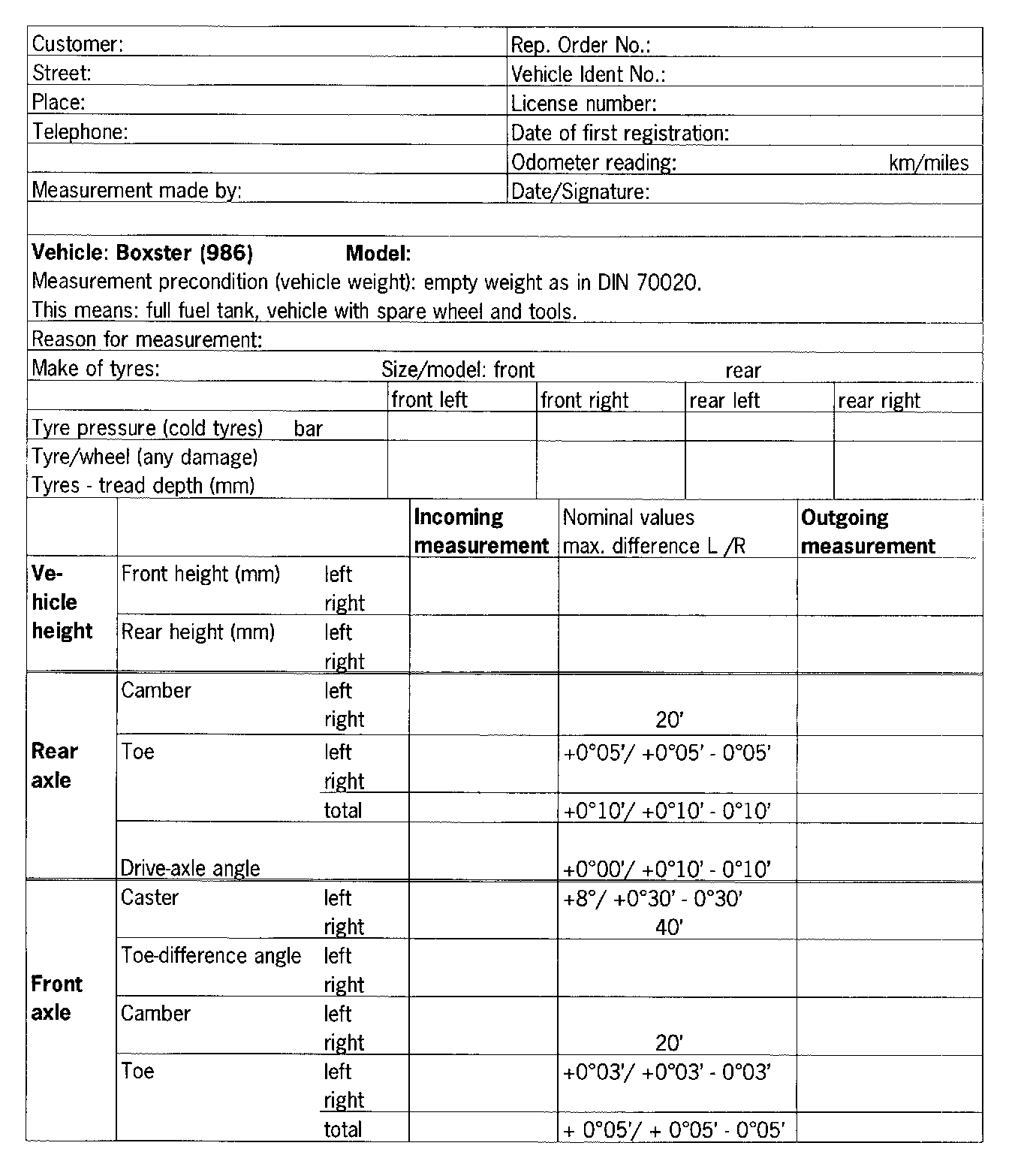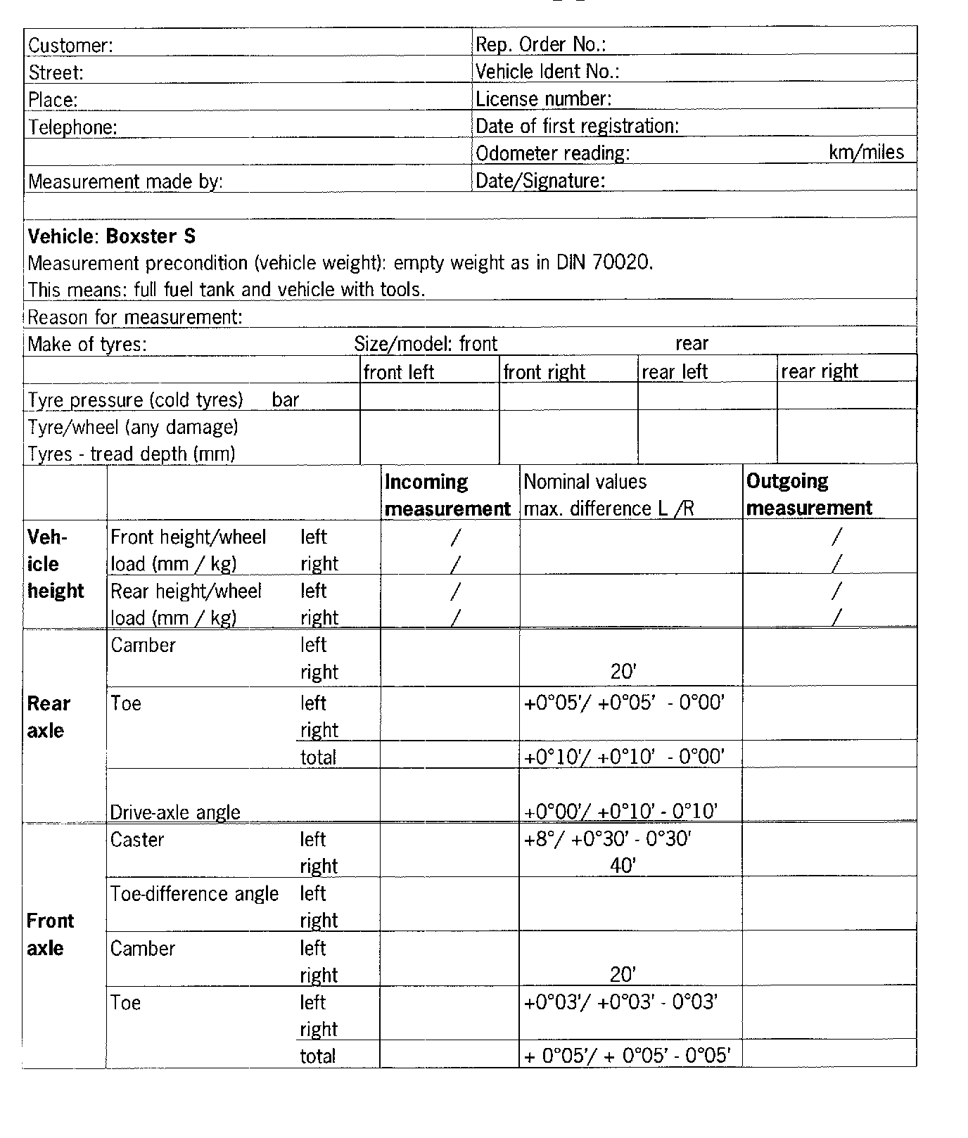 Porsche measurement of running gear-Boxster