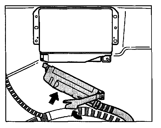 3. Lift out the control unit and open the connector -arrow- and remove.