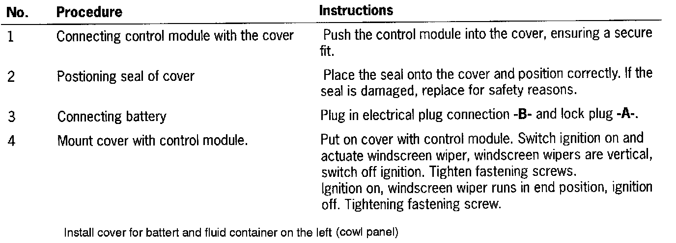 WARNING: When working in the area of the wiper link, the ignition key must be removed.