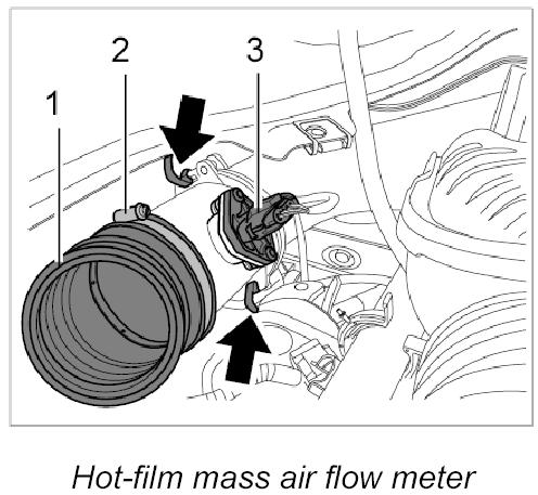 2. Release and disconnect cable plug for air flow sensor -3-.