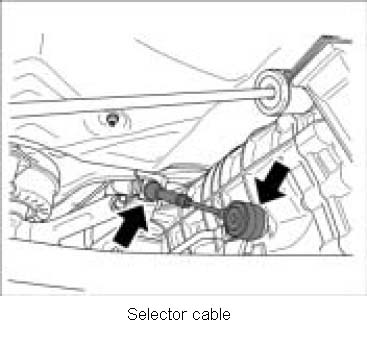 1. Lever selector cable off the ball pin and disengage from support bracket.