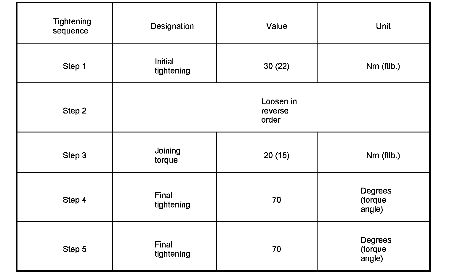 Position 14 M9 x 127 thrust-bearing screws manually. Pre-tighten screws to the required tightening torque in accordance with the tightening sequence. Then tighten to the required torque angle.