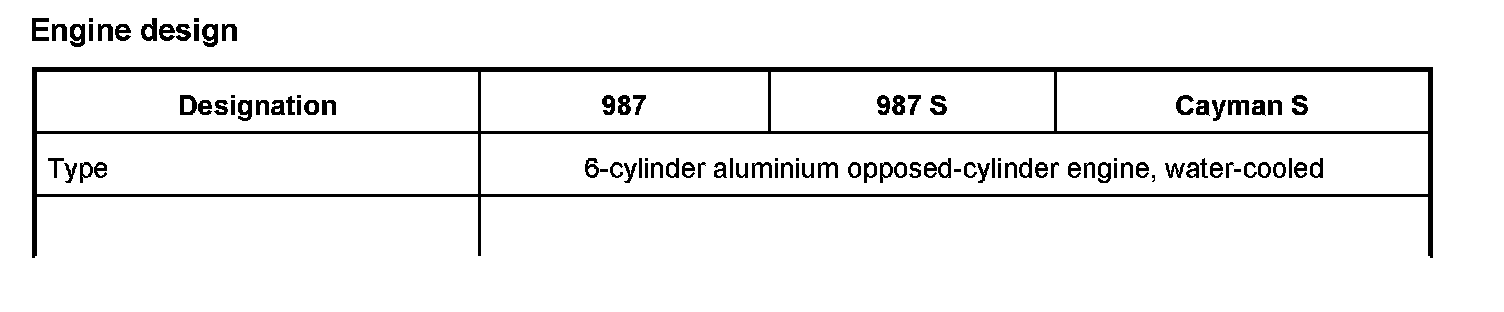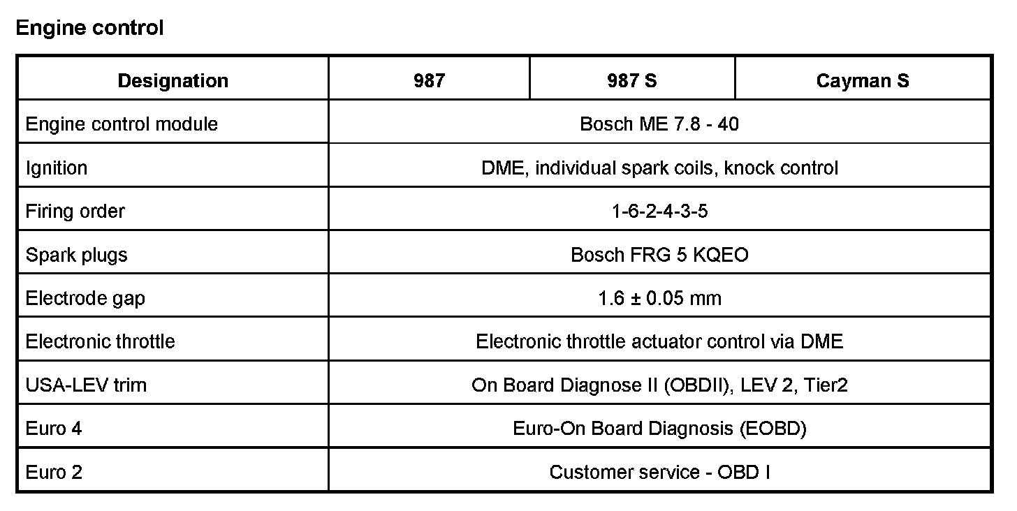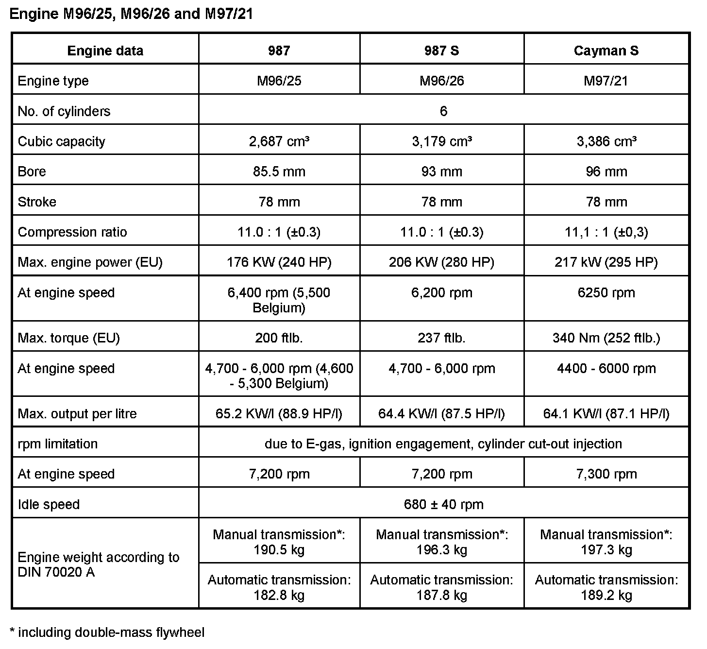 Home >> Porsche >> 2005 >> Boxster (987) F6-2.7L >> Repair and Diagnosis >> Specifications >> Mechanical Specifications >> Engine >> System Specifications