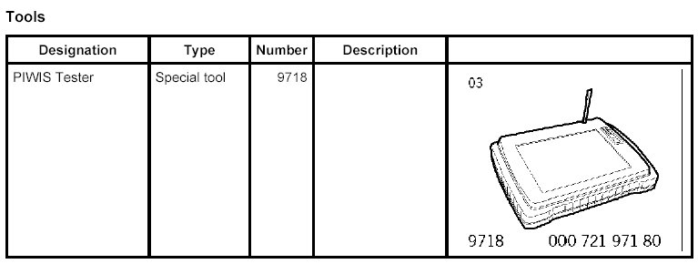- The PIWIS Tester 9718 instructions take precedence since the description may be different. This may be due to more recent software versions.