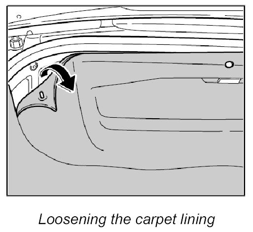 1. Place carpet lining in position, paying attention to the fitted shape.