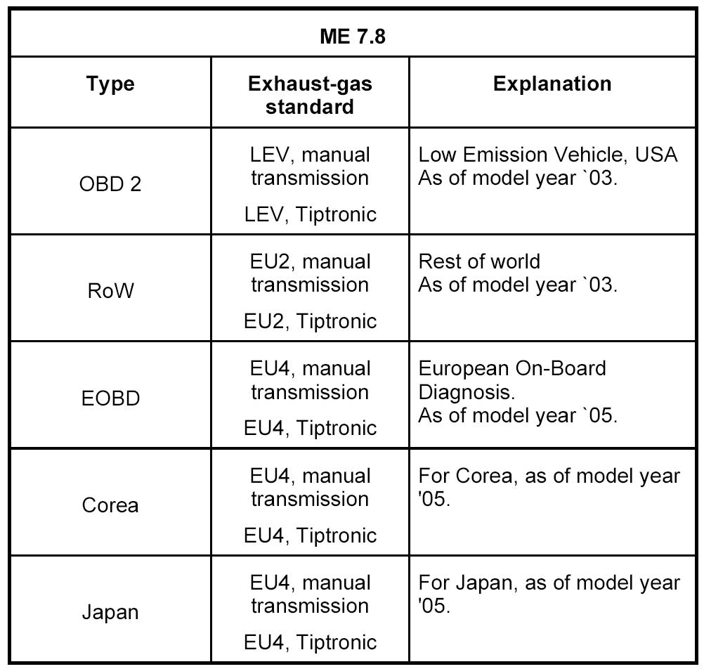 In some countries (currently USA, Canada) the Ready status must be obtained following a test drive or by using the Porsche System Tester after the DME control unit has been programmed. If in doubt, contact the relevant importer.