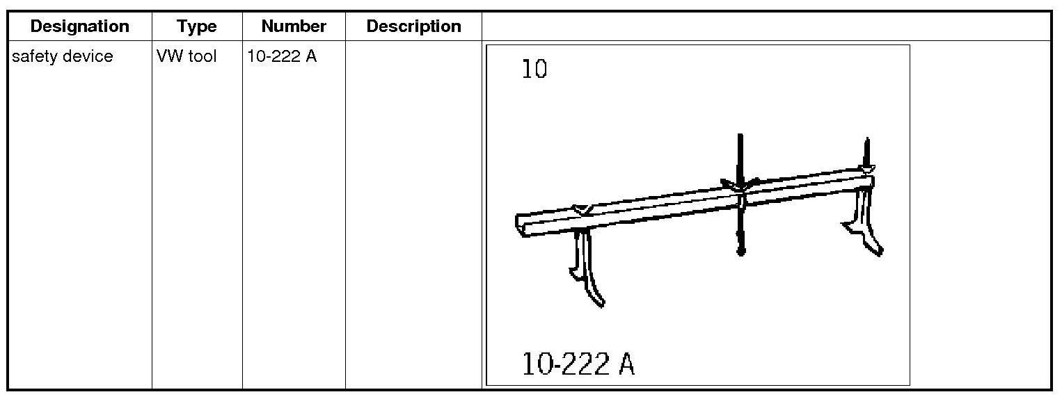 2. Fix the engine in the installation position using safety device 10-222 A at the engine lifting bracket.