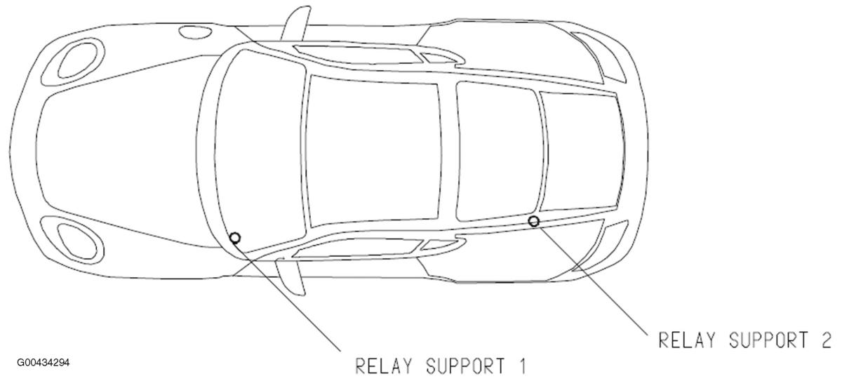 | Relay Support 2 | On left side of rear luggage compartment. See Figure. |