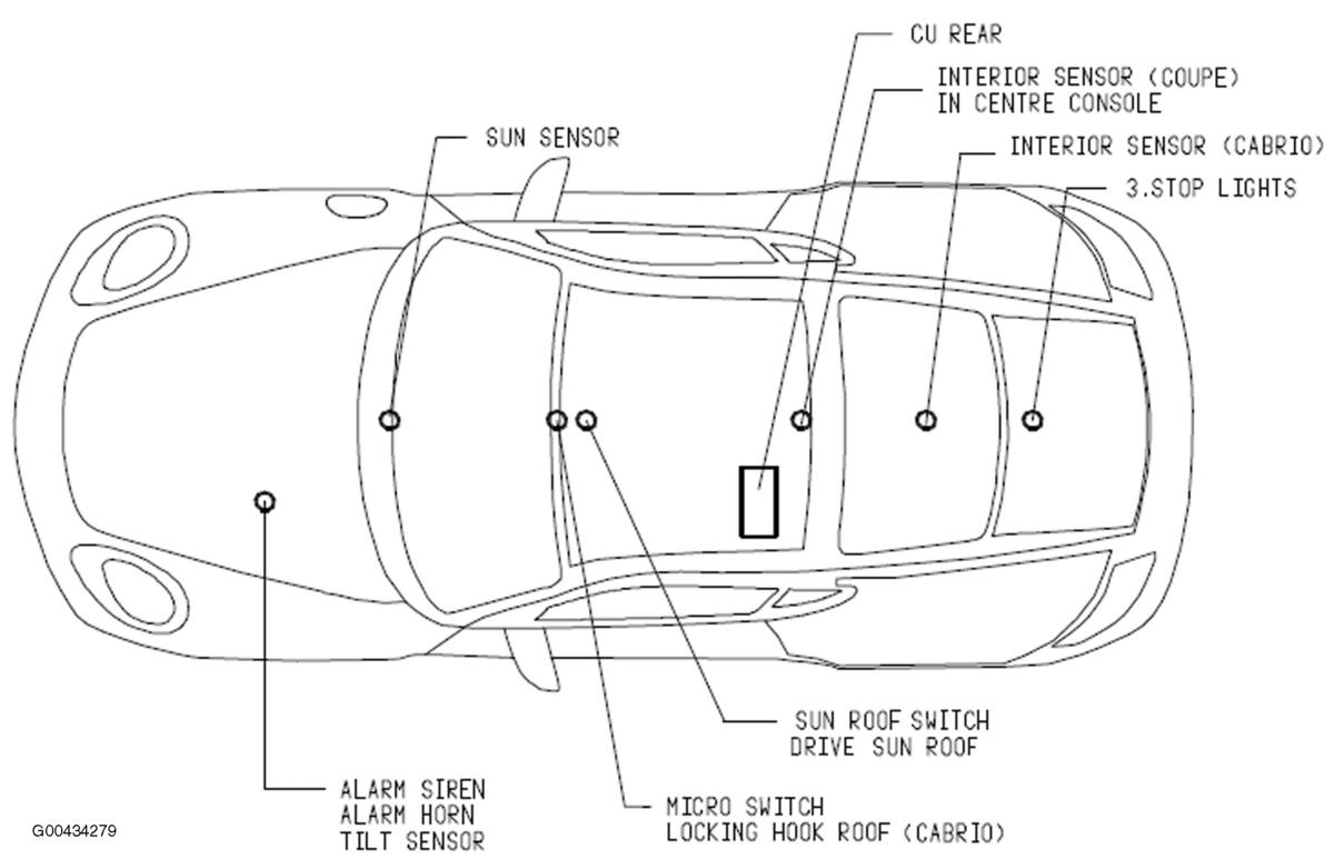 | CU PSM (Porsche Stability Management Control Unit) | Left side of front luggage compartment. See Figure. |