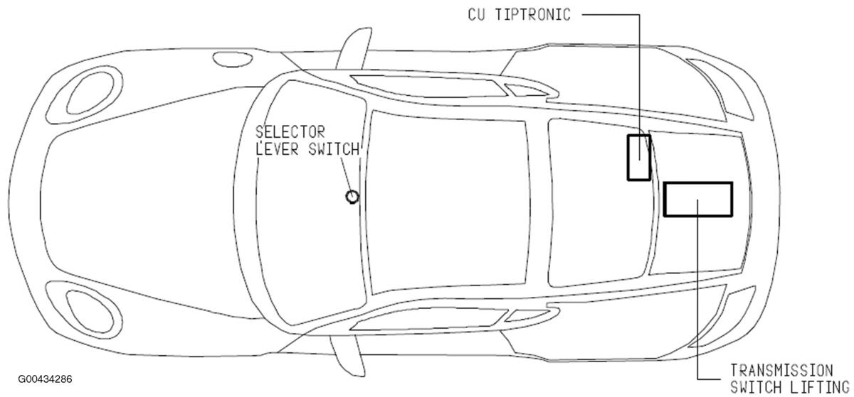 | CU Tiptronic | Right rear of engine compartment. See Figure. |