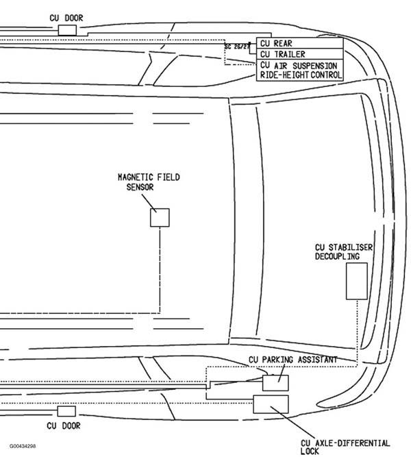 | Ride-Height Control Control Unit | Over right rear wheelwell. |