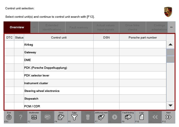 • If coding is not carried out successfully during the guided programming sequence, the control unit must be re-coded again separately once the guided programming sequence is complete. To do this, select the relevant control unit in the control unit selection screen ("Overview" menu) and press [>>] to confirm your selection. Once the control unit has been found, select the  "Codings/adaptations  " menu and re-code the control unit using the 'Automatic coding' function  .