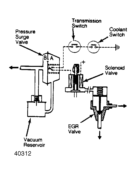 The Fuego and Sportwagon non-turbo systems include thermo valve, vacuum reservoir, differential pressure switch, EGR valve solenoid and EGR valve. See Figure .