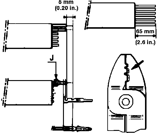 5. Install seals (J) and terminals on wire ends, then secure terminals with a suitable crimping tool, Fig. 5.