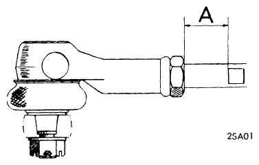 After adjustment of toe-in, measurement A (see Fig 1) of tie rod must not exceed 7.6" (with key grip) or 7.2" (without key grip). For tie rods opposite to each other the difference between the measurements A must not exceed 0.08".
