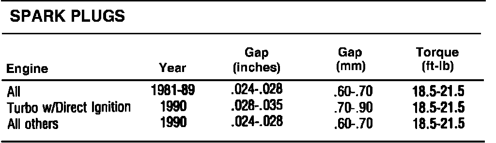 Spark Plug Specifications *** Updated by TSB #0787982 July 87: