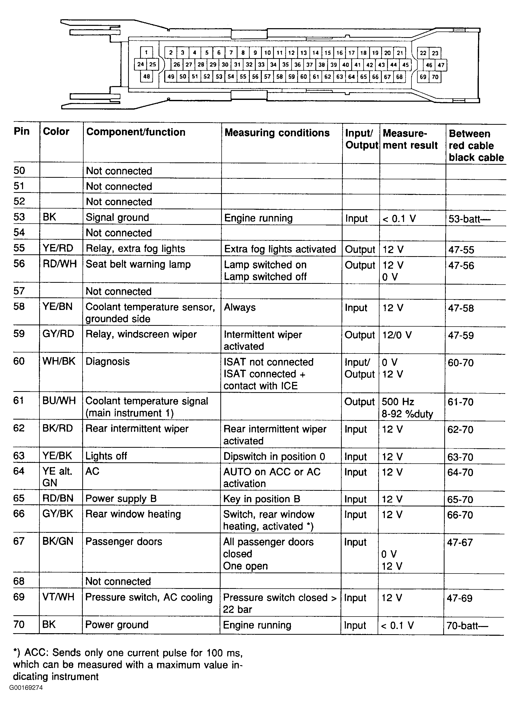 Home >> Saab >> 1994 >> 900 Base, Automatic >> Repair and Diagnosis (Single Page) >> Accessories & Equipment >> Communication Devices >> Integrated Central Electronics (Ice) >> Self-Diagnostics >> Measurement Data (Electronic Control Module Connections)