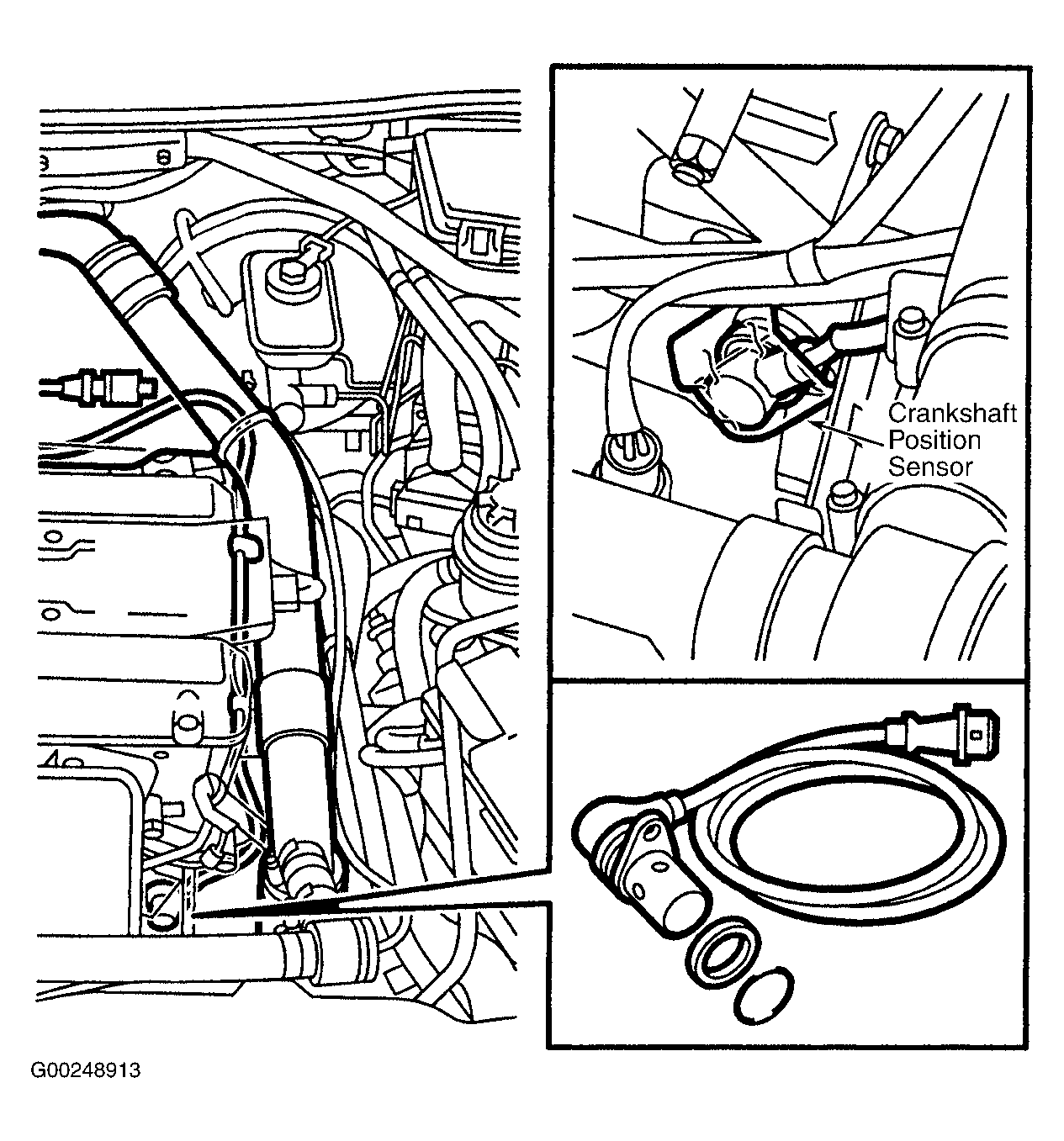 Home >> Saab >> 1999 >> 9-3 Base, 2D Convertible, Automatic >> Repair and Diagnosis >> Engine Performance >> Remove, Overhaul & Install >> Engine Controls - Remove/Install/Overhaul >> Ignition System >> Crankshaft Position (CKP) Sensor >> Removal & Installation - 9-3 Series With Trionic T-5 Engine Management System