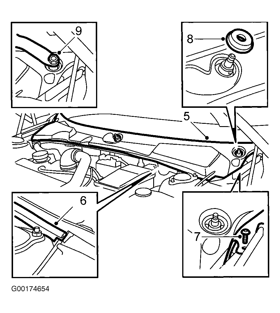 - Install the windscreen cover. Be careful with the hood release wire on the left side. See Fig 2
