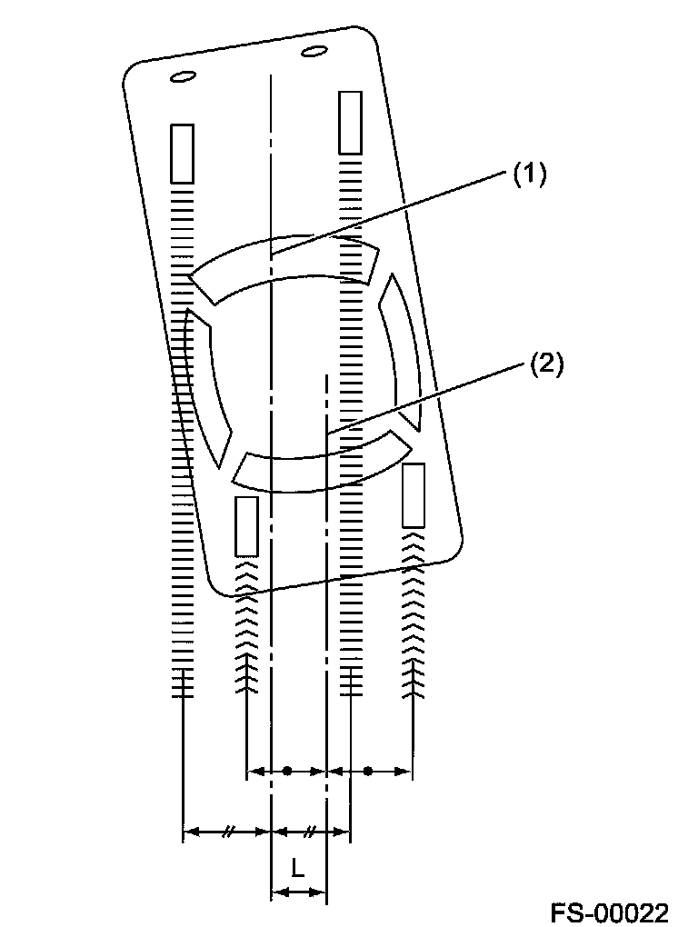 When the right and left adjusting bolts are turned incrementally by one graduation in the same direction, the thrust angle will change approximately 16' ["L" is almost equal to 12 mm (0.472 in)].