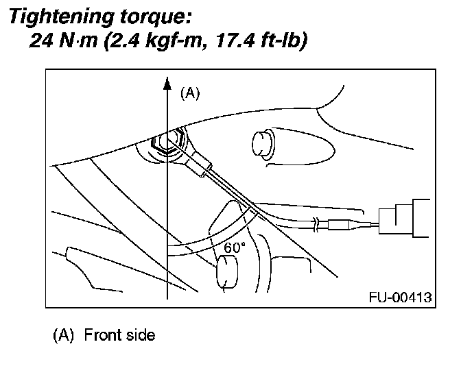 NOTE: Extraction area of knock sensor cord must be positioned at a 60 degree angle relative to the engine rear.