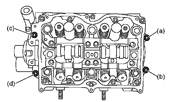 Temporarily tighten the bolts (a) through (d) in alphabetical sequence.