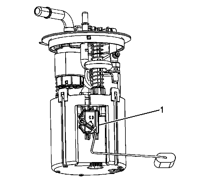 The fuel level sensor (1) consists of a float, a wire float arm, and a ceramic resistor card. The position of the float arm indicates the fuel level. The fuel level sensor contains a variable resistor which changes resistance in correspondence with the position of the float arm. The control module sends the fuel level information via the serial data circuit to the instrument panel cluster (IPC). This information is used for the IPC fuel gage and the low fuel warning indicator, if applicable. The control module also monitors the fuel level input for various diagnostics.