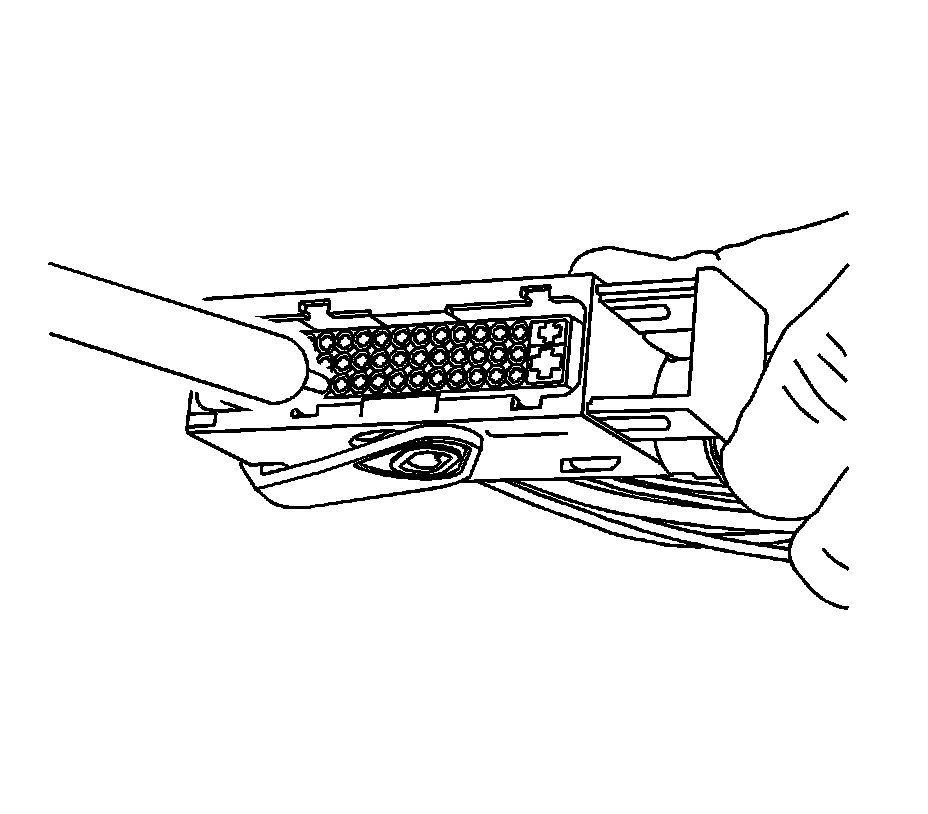 For the larger terminals insert the J 38125-556 (GM P/N 12093647) tool to release the terminals by inserting the tool into the terminal release cavity. For the smaller terminals insert the J 38125-560 (GM P/N 15314260) tool to release the terminals by inserting the tool into the terminal release cavity. See the release tool cross reference in the Reference Guide of theJ-38125 to ensure that the correct release tool is used.