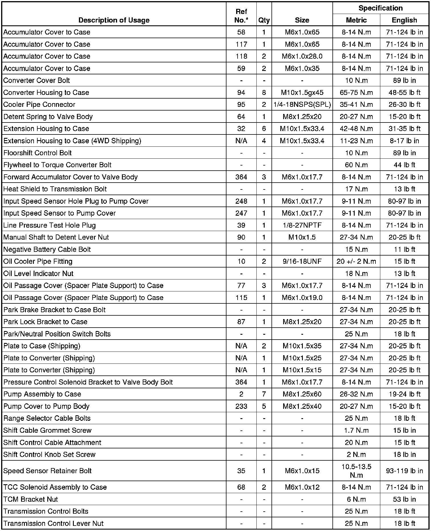Torque Specifications