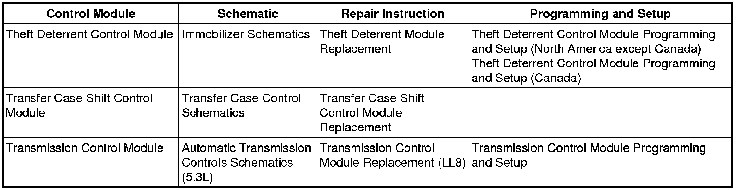 Home >> Saab >> 2005 >> 9-7X L6-4.2L >> Repair and Diagnosis >> Testing and Inspection >> Programming and Relearning >> Control Module References