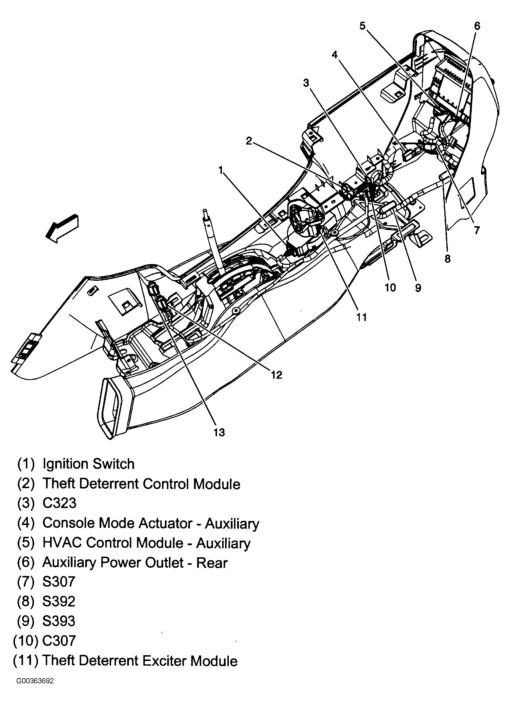 | Theft Deterrent Exciter Module | Under floor console. See Figure . |