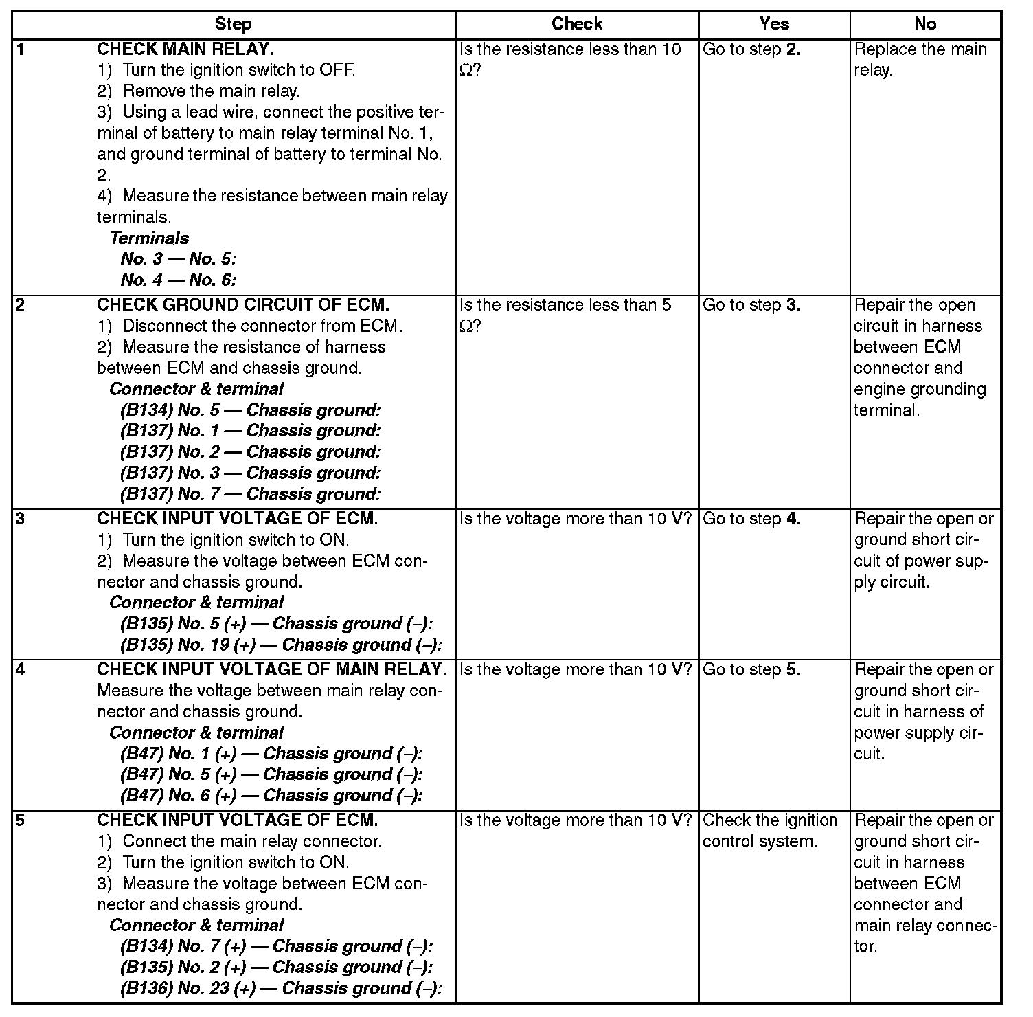 CHECK POWER SUPPLY AND GROUND LINE OF ENGINE CONTROL MODULE (ECM)