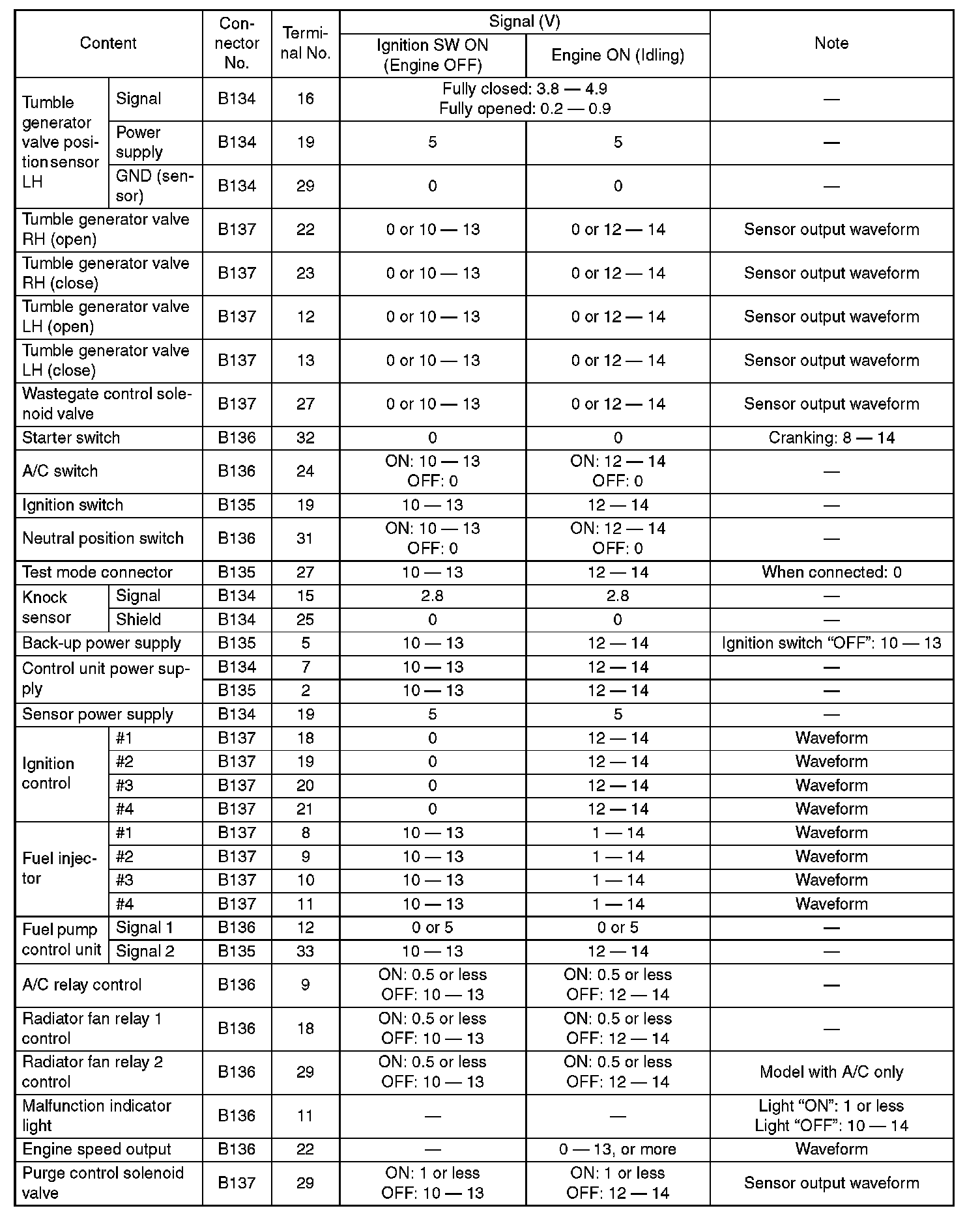 Home >> Saab >> 2006 >> 9-2X F4-2.5L Turbo >> Repair and Diagnosis >> Powertrain Management >> Computers and Control Systems >> Relays and Modules - Computers and Control Systems >> Engine Control Module >> Testing and Inspection >> Pinout Values and Diagnostic Parameters