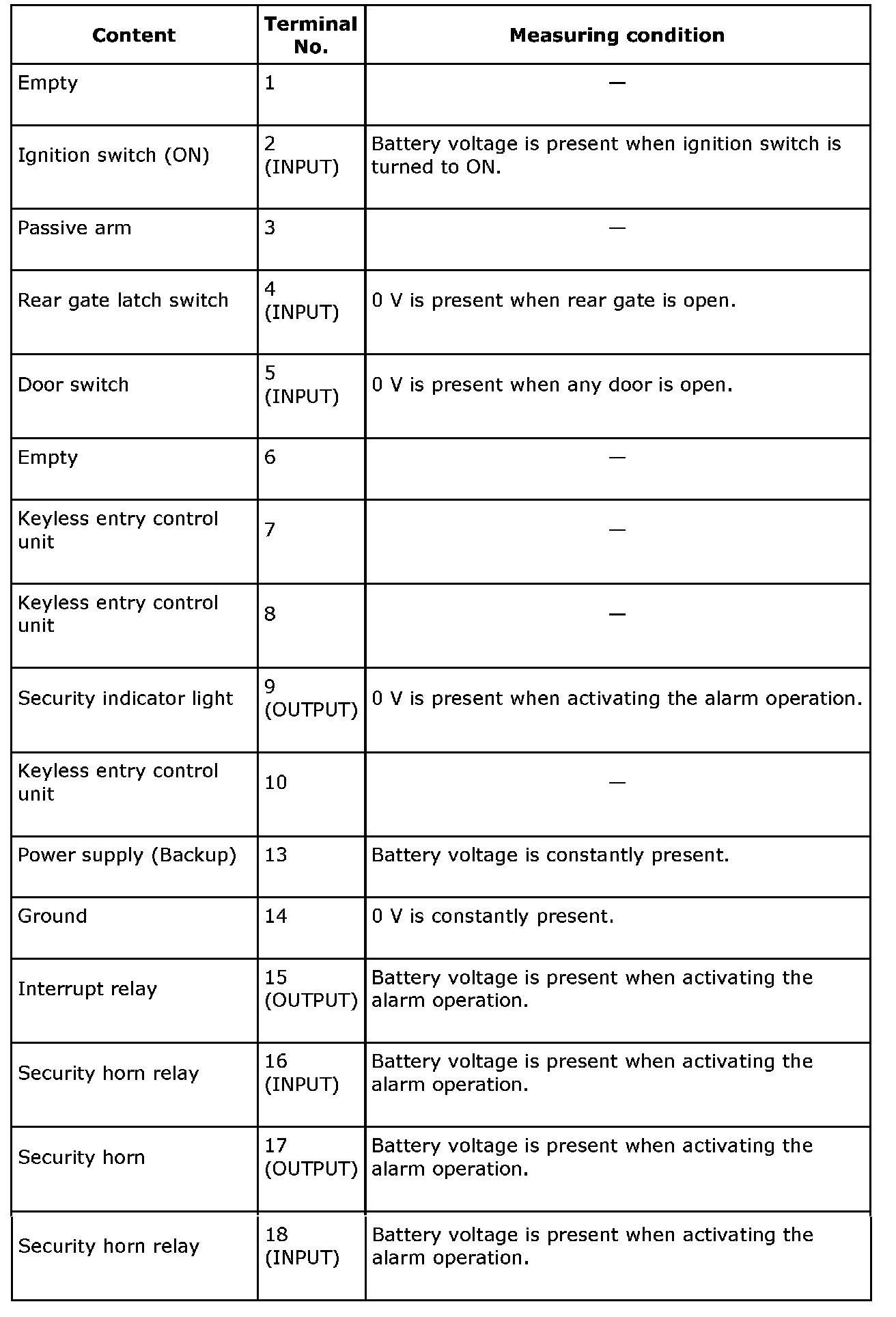 Control Module Pinout Values