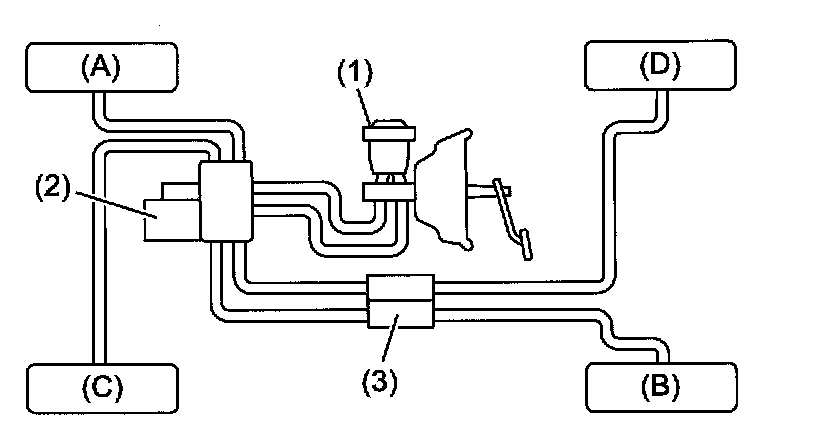 Important: Brake fluid replacement sequence; (A) Front right, (B) Rear left, (C) Front left, (D) Rear right