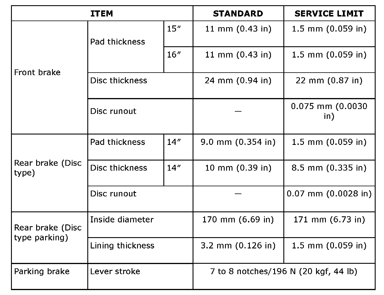 Refer to parking brake SPECIFICATIONS.