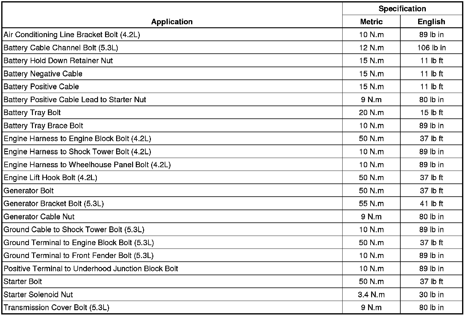 Fastener Tightening Specifications